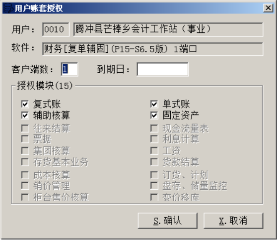 ②账套模块、客户端数授权只能够在狗的授权范围内进行。