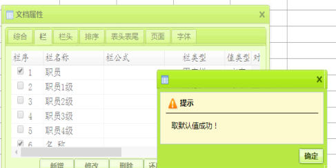 它主要对可显示的栏头进行设置。首先设置好文档属性的【栏】,然后以栏取默认值,再根据取出来的栏头设计成需要显示的栏头类型。