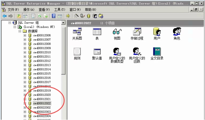 打开数据库后,数据库中有cwd00012022数据库,如图: