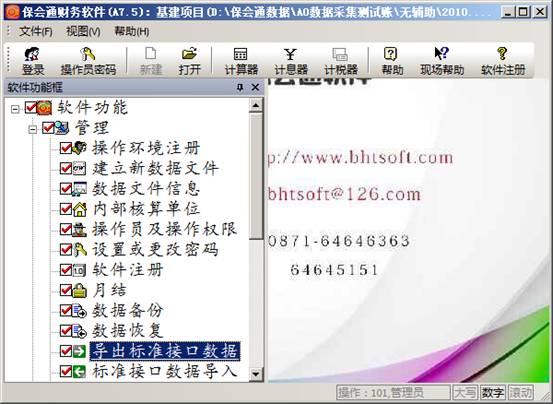 1、确定保会通财务软件的版本号。只有6.0版以上的保会通财务软件才提供了此功能:导出标准接口数据。